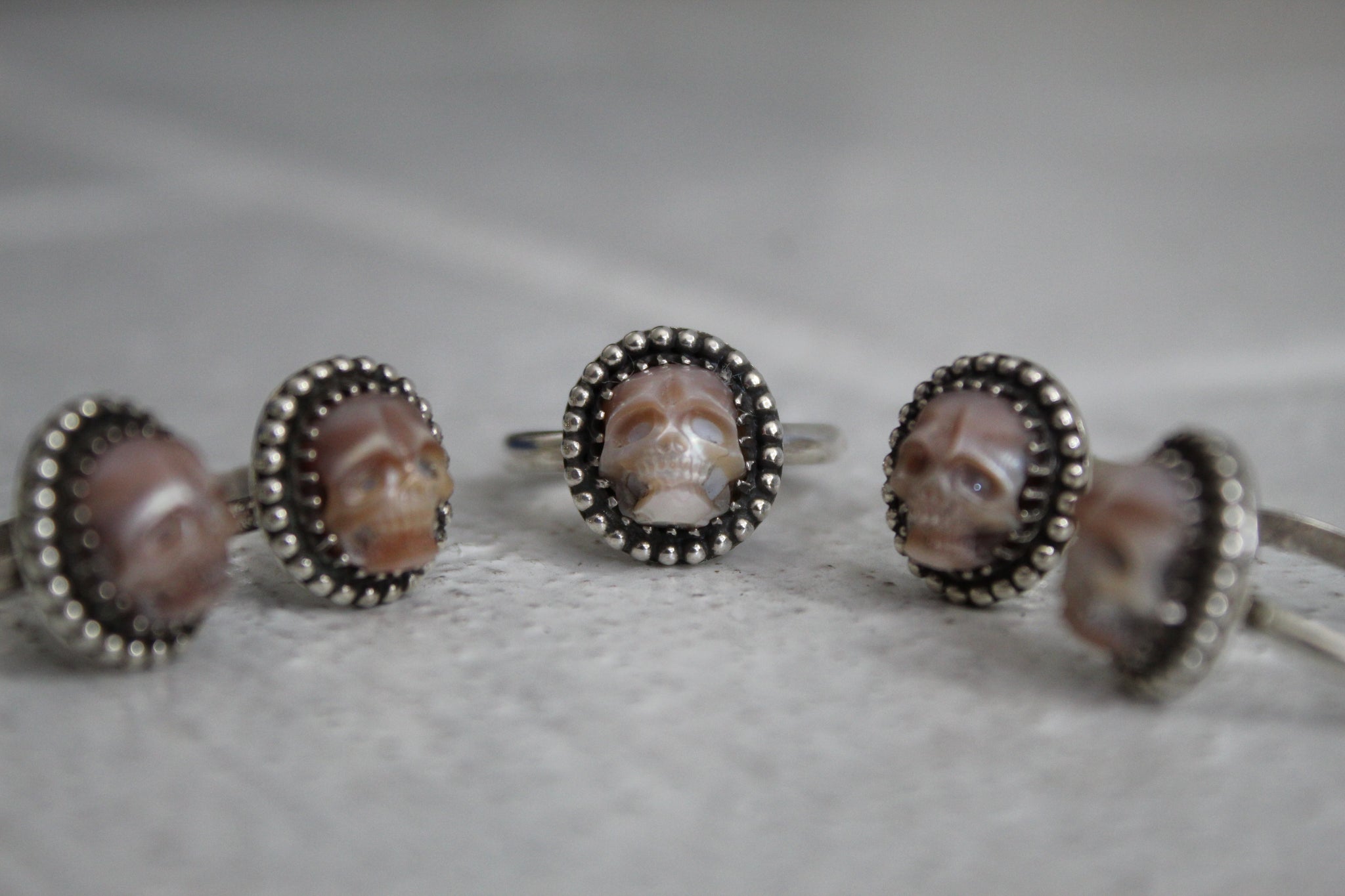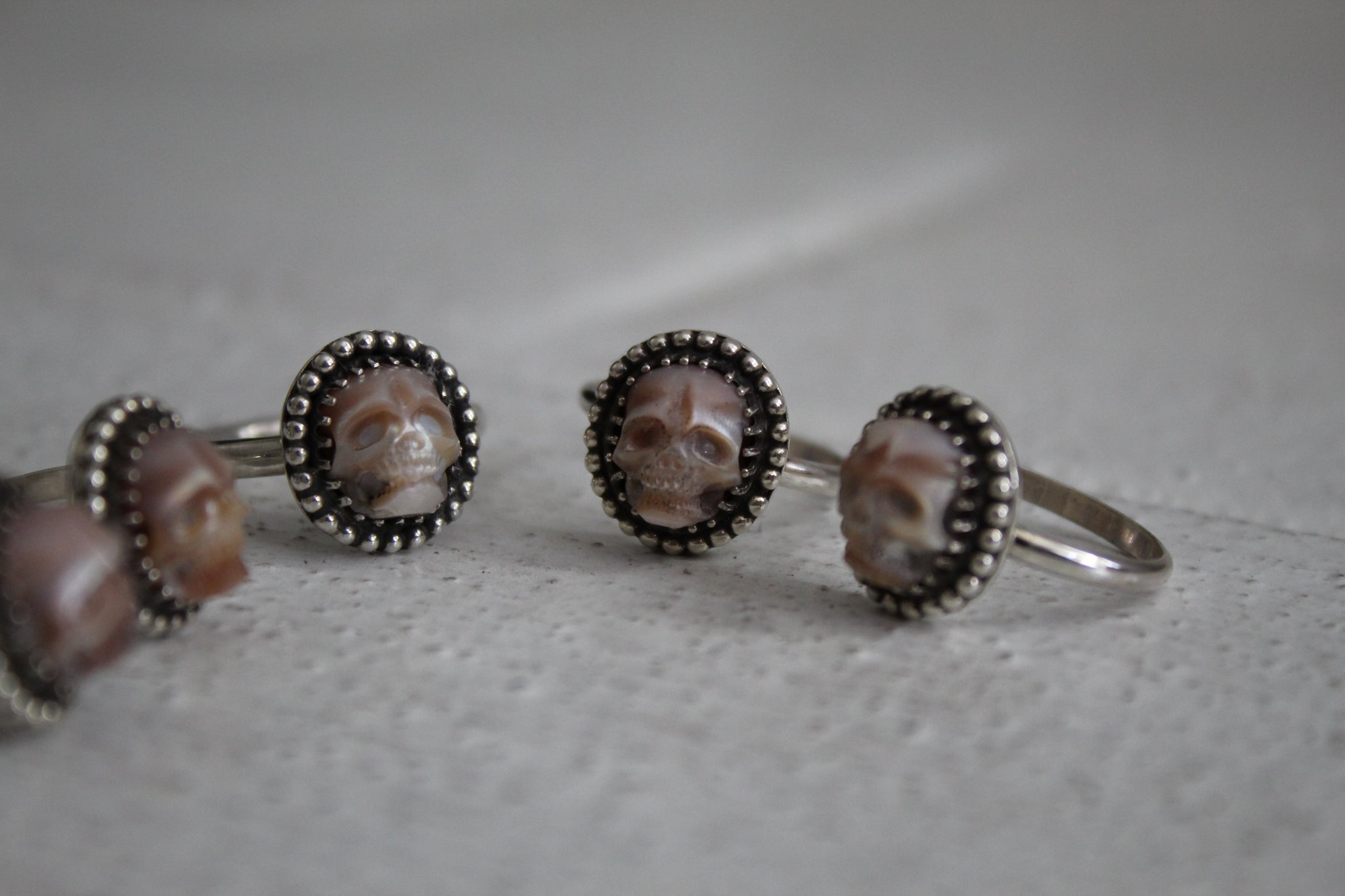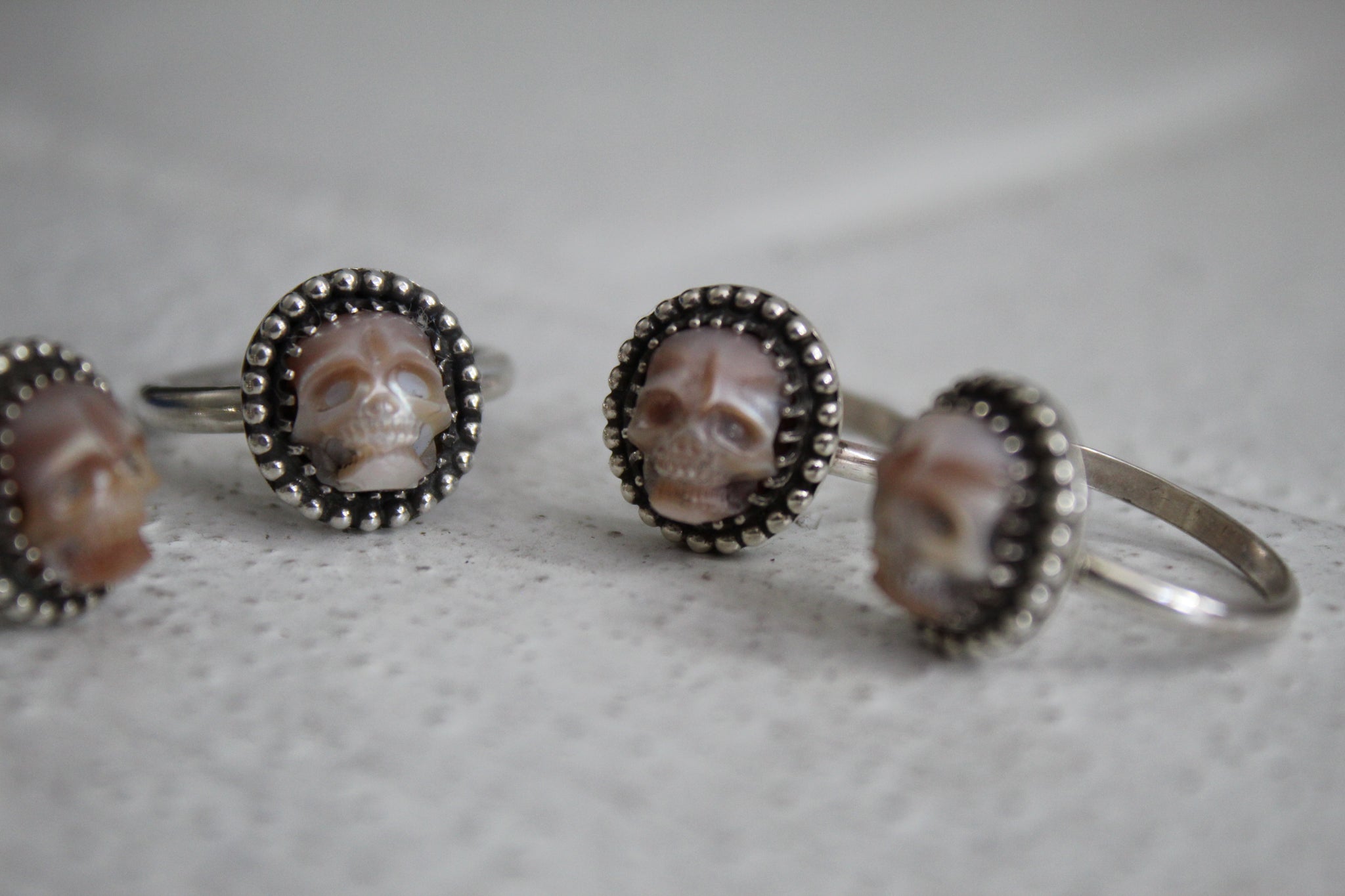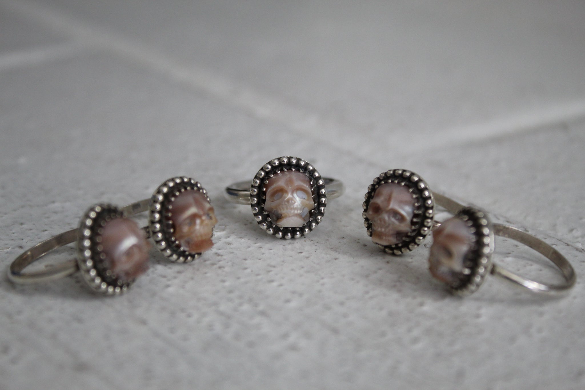 Fresh Water Pearls carved into a Skull set in Sterling Silver