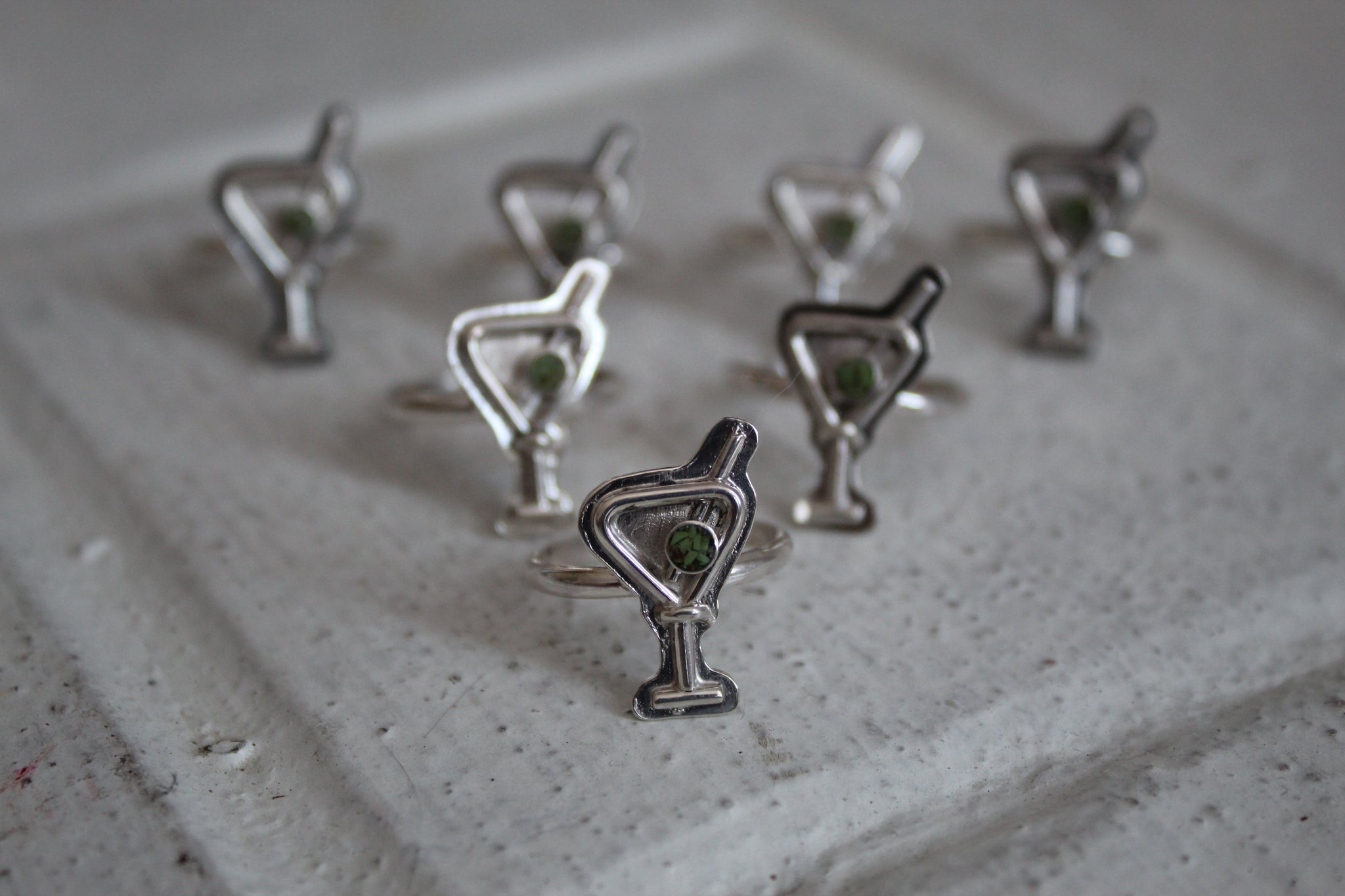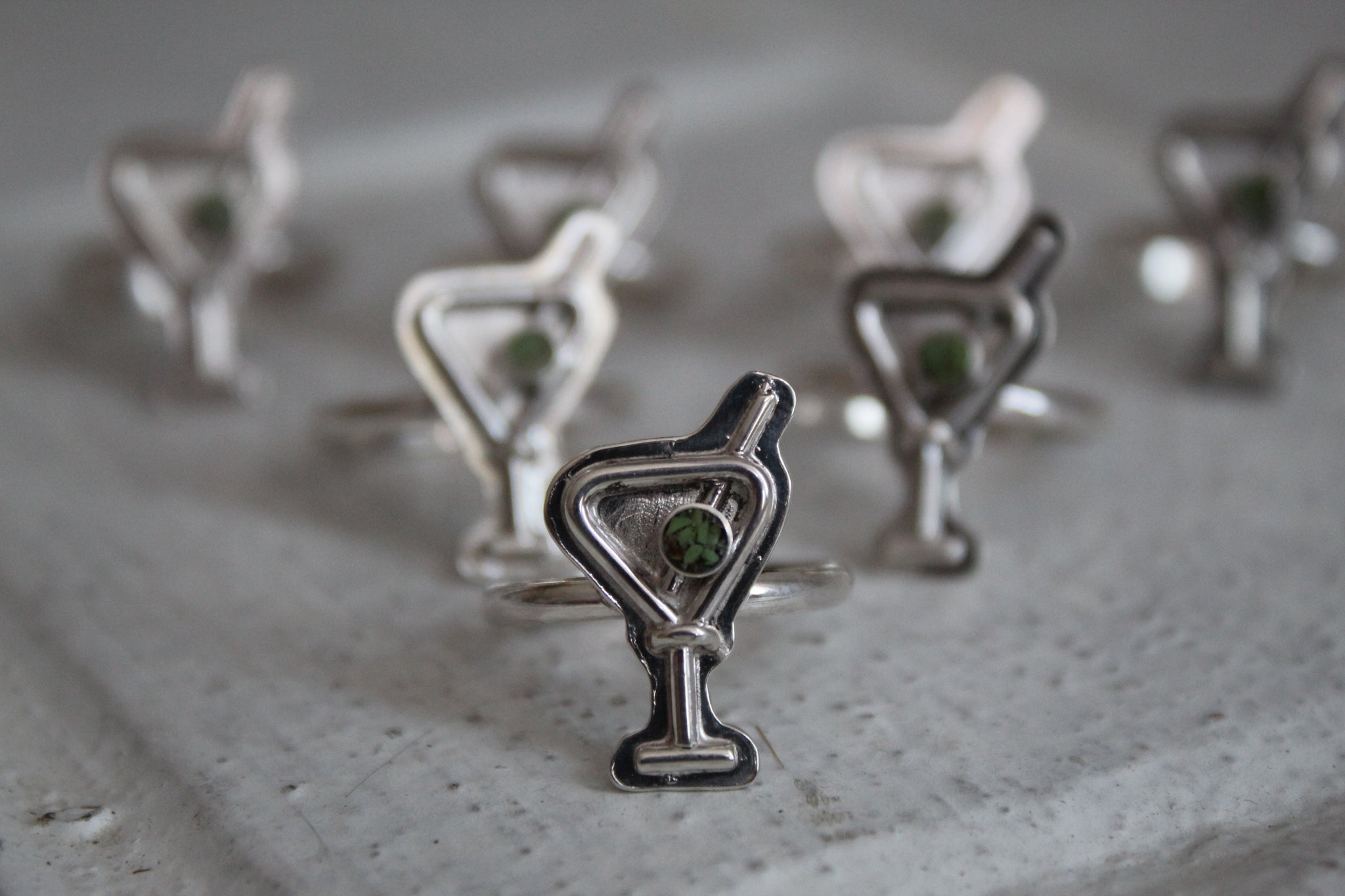 Sonoran Gold inlay “Olive” on a Sterling Silver Martini Glass Ring