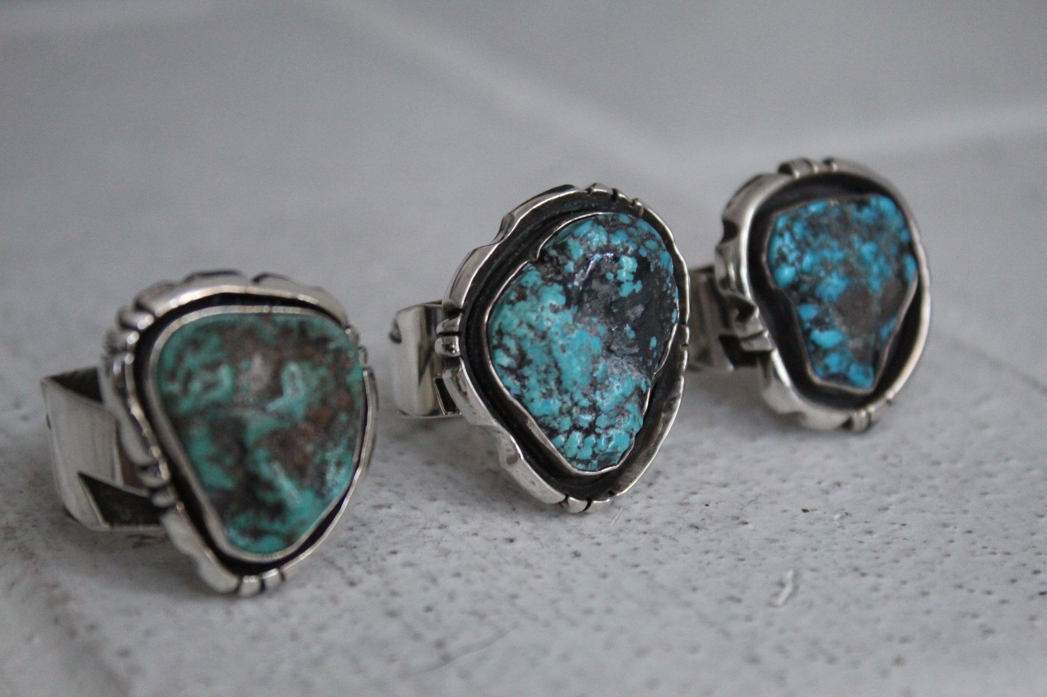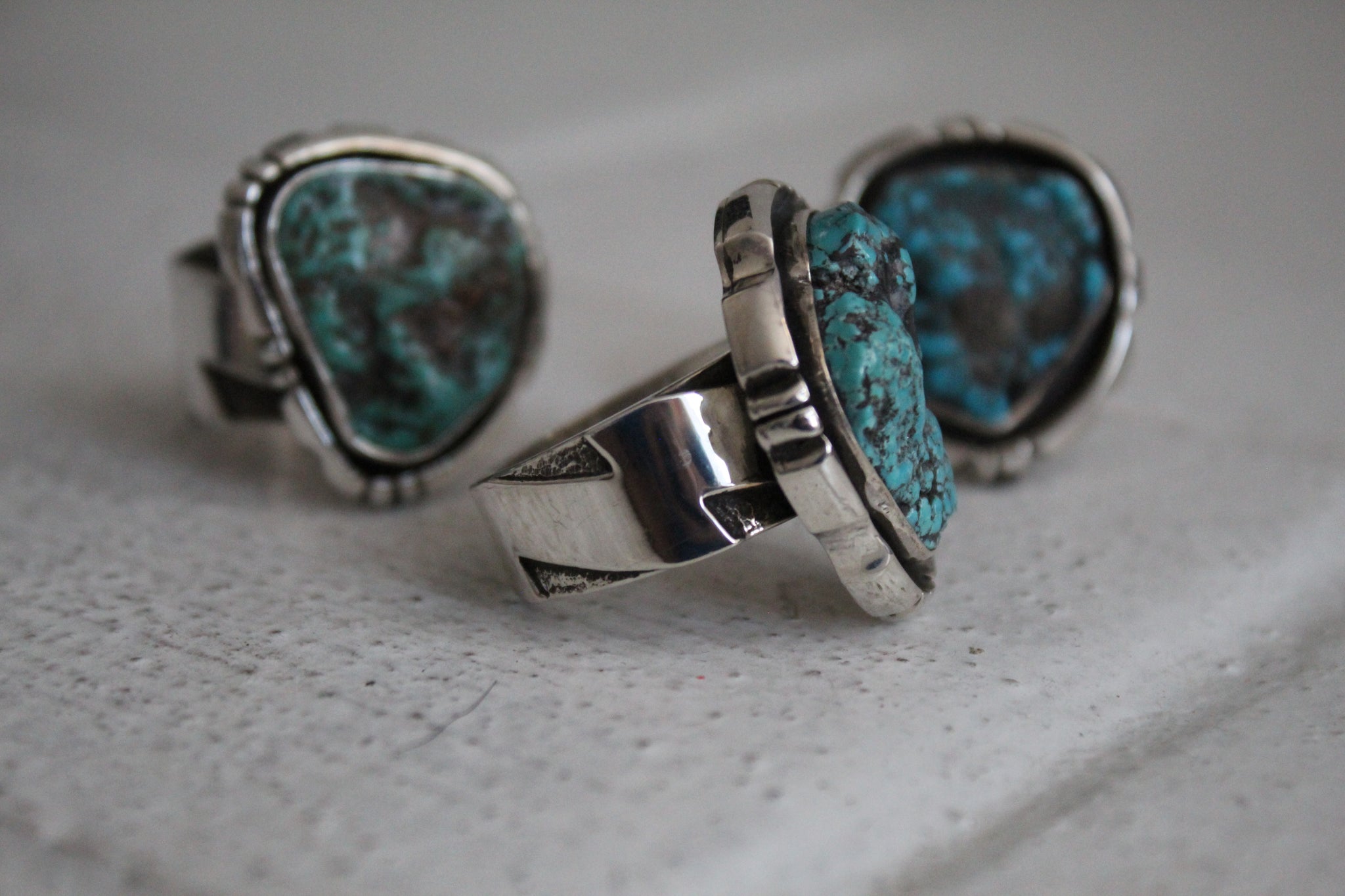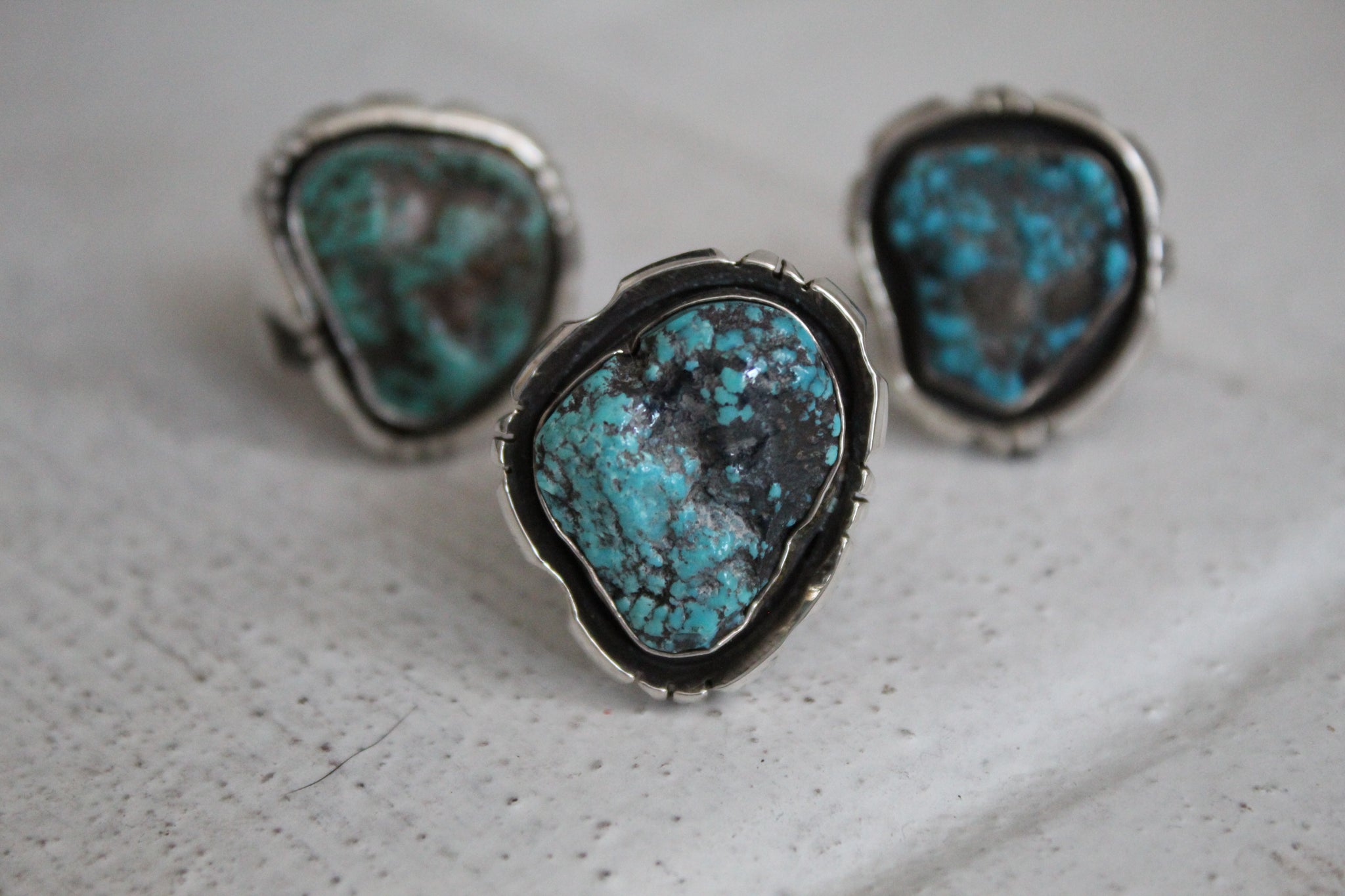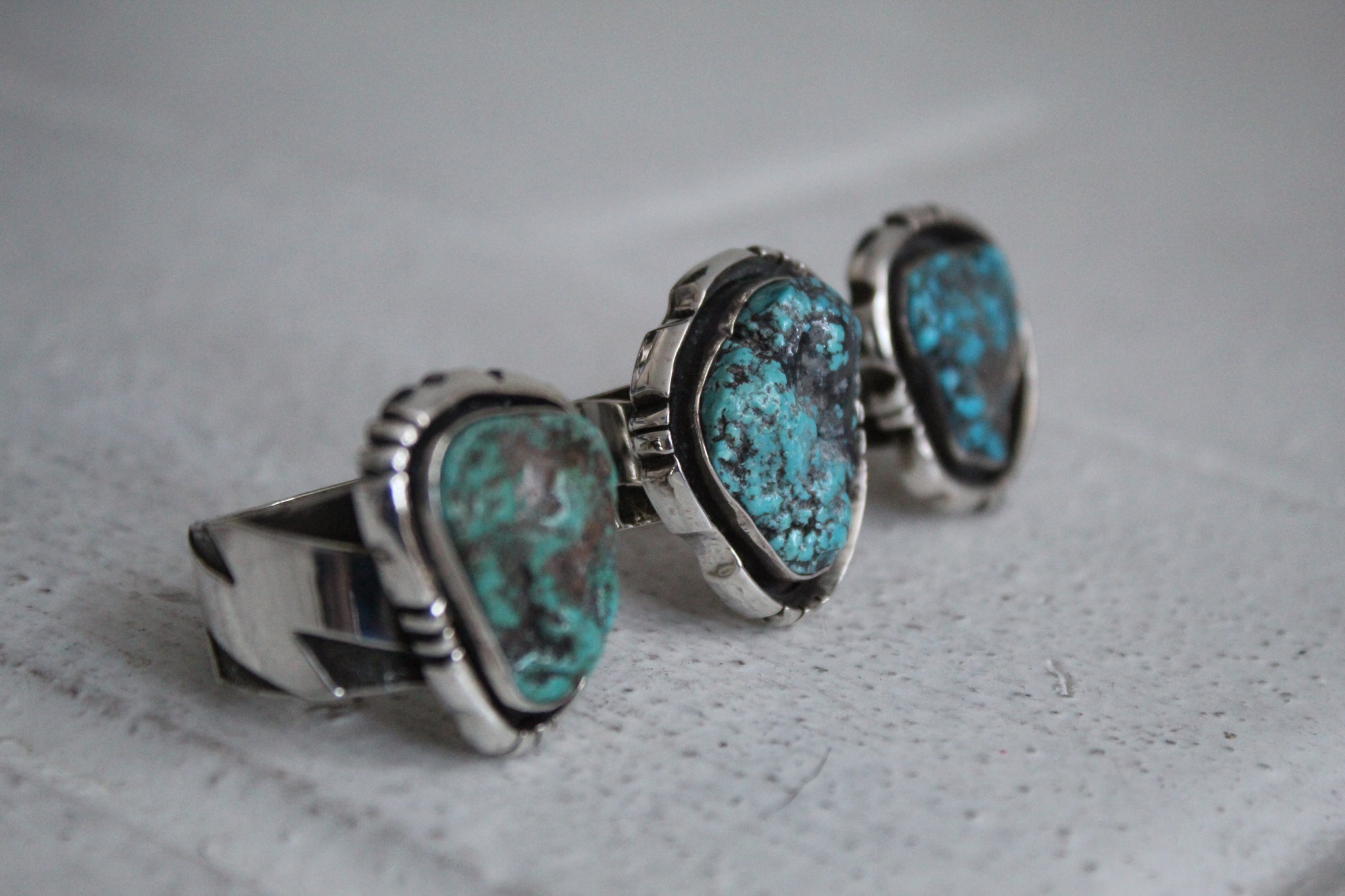 Turquoise set in Sterling Silver with Lightning Bolt Bands