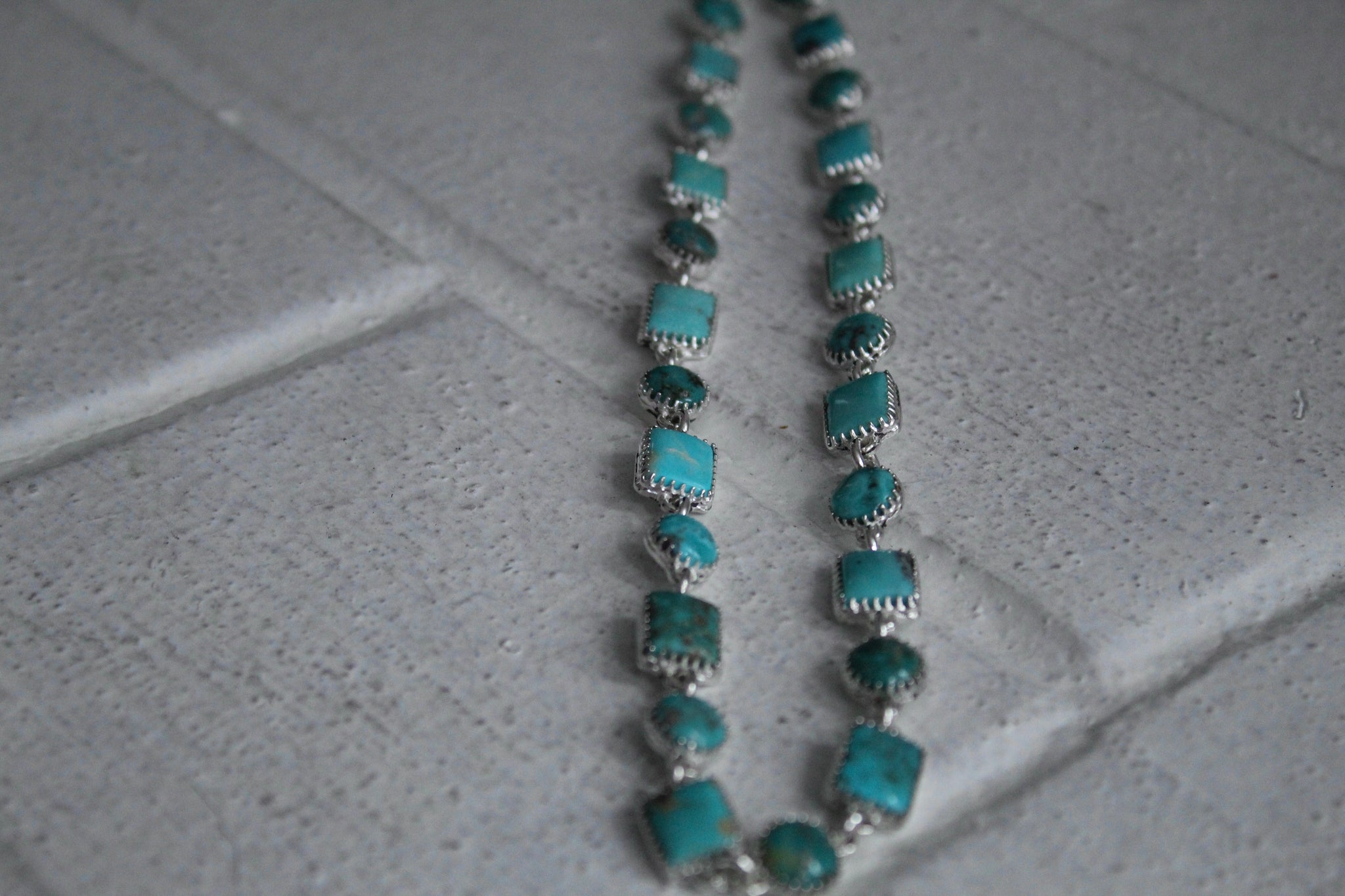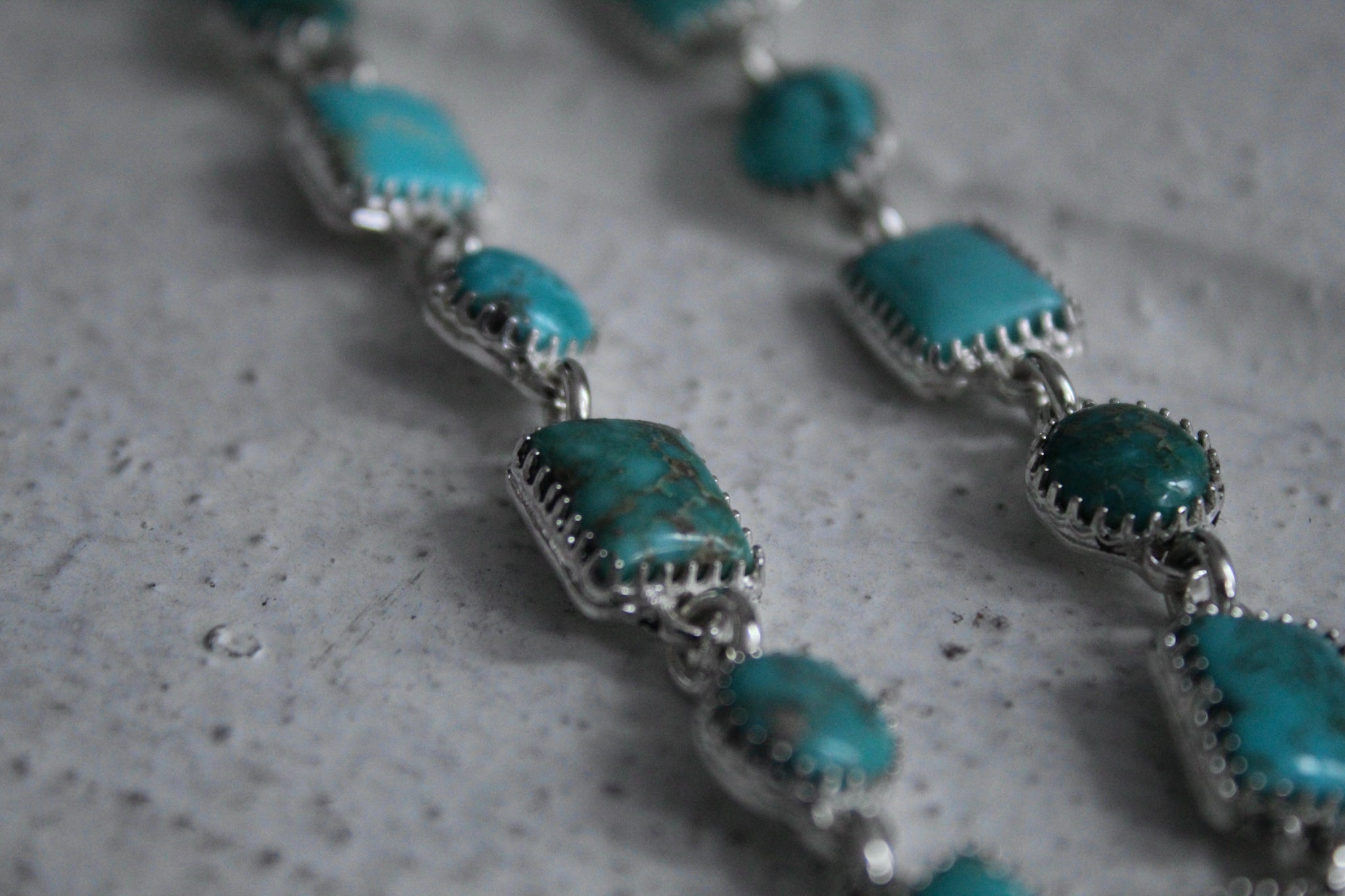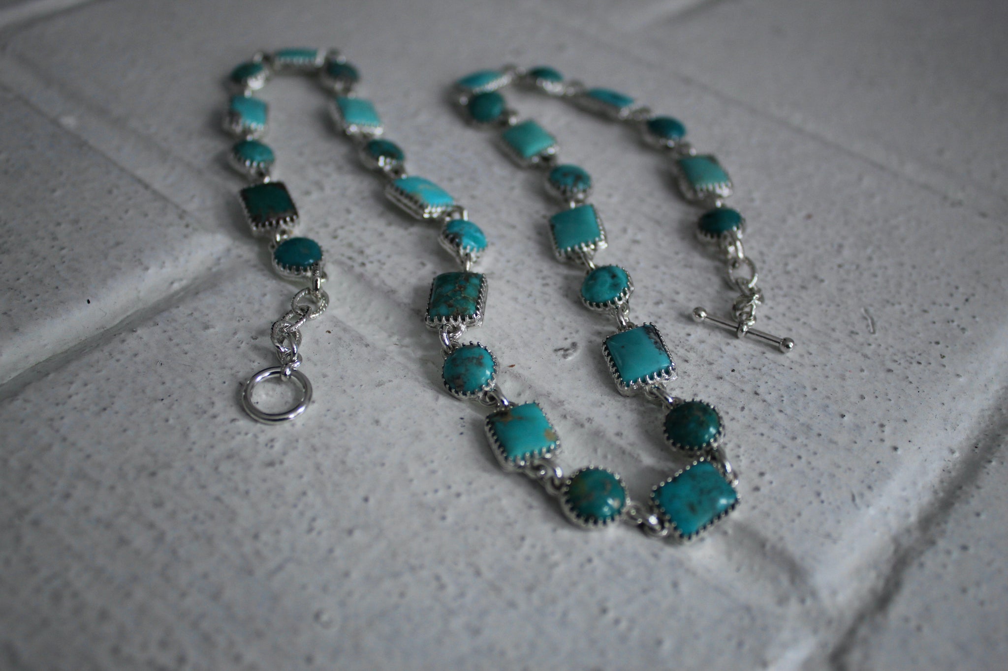 Mixed Turquoise set in a handmade Sterling Silver chain.