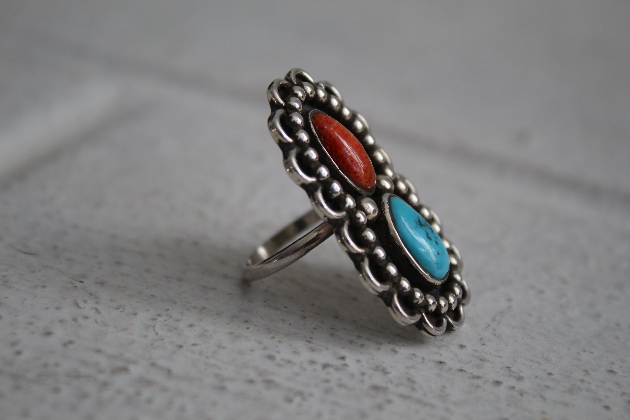 Turquoise and Coral Ring sz 5.5
